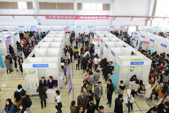 2015年11月11日星期三中午,我校2016届校园招聘会在体育馆如期举行,参加本次招聘会的新老单位共计148家,包括上海外高桥船厂、上海春秋国际旅行社(集团)有限公司、熙可食品科技(上海)有限公司、花园饭店、中国平安财产保险股份有限公司上海分公司等知名企业,以及近四十家上海各区公办小学和幼儿园。本次参展的用人单位都是经学校就业中心工作人员从300余家报名单位中逐一比较、精心筛选出来的,招聘行业及岗位涉及学校各专业,招聘人数达1600 多个,用人单位收到3000余份简历。