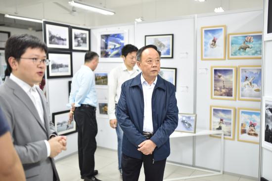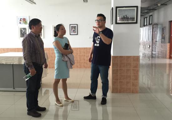 (嘉定区经委徐惠泉主任与艺术设计学院王大根院长认真对此次展览进行交流)
