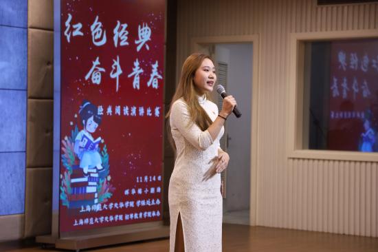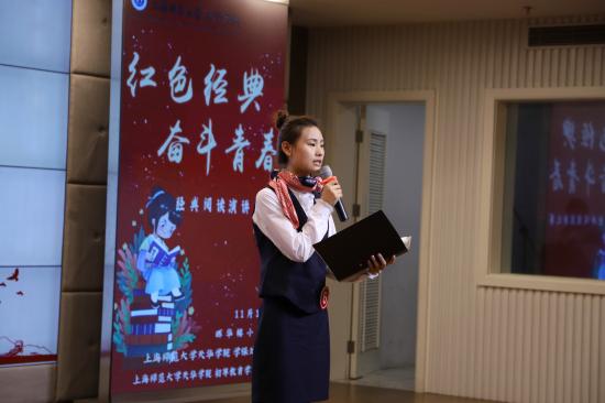 首先,通识学院副院长聂晓晶为大赛寄语,他希望同学们在上海这个红色文化的发源地,通过对红色经典的演绎,深刻理解“红色经典”永不过时在于其拥有乐观积极向上热情的青春力量,而我们正是将这股青春力量继续发扬的年青一代。