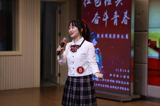随后,本次比赛正式拉开了帷幕。来自各二级学院的8名参赛选手紧紧围绕“红色经典,奋斗青春”这一主旋律,立足天华实际,结合学生本职,说革命先烈先进事迹、讲革命先烈真实故事,对其中的人物、故事、情感进行品读、体会、延展,感受每部经典背后隐含的价值,用激昂的斗志和铮铮的誓言表达了自己“不忘初心、牢记使命”,同心共筑中国梦的信念和决心。《永远铭记,我们的红色基因》、《雄视千古览寰宇,牢记初心明使命》、《把一切献给党》等,一个个激情澎湃的红色故事,仿佛向我们展示了一幅幅壮丽的红色历史画卷,重温难以磨灭的红色经典;一个又一个感人的历史事件,将师生们带入了那个烽火硝烟的年代,心灵又得到了一次红色洗礼。