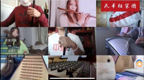 10分钟的课间休息,播放了天华雅乐团同学们在“云端”录制合成的民乐合奏《九九八十一》,铿锵的乐句,“七十二般胆魄我决意不闪躲,纵深入尘埃里,雷雨大作我也放声而歌”的豪情跃然指尖。