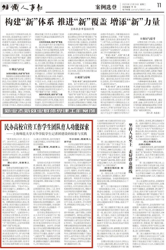 组织人事报 | 民办高校宣传工作学生团队育人功能探索——上海师范大学天华学院学生记者团建设的探索与实践《组织人事报》第3169期(2023年12月19日)2023-12-21 -