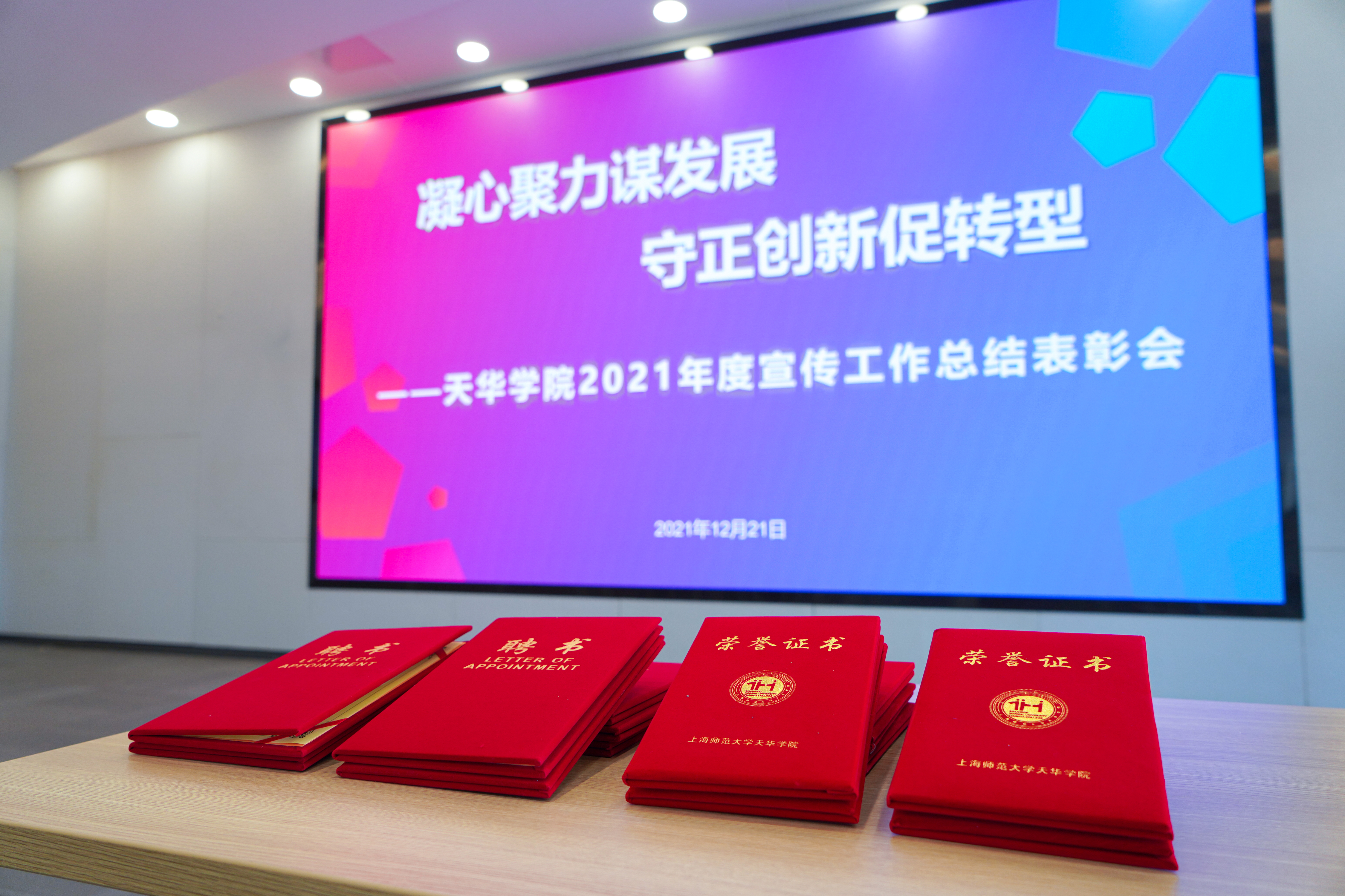 凝心聚力谋发展 守正创新促转型 ——学校举办2021年度宣传工作总结表彰会12月21日下午,2021年度宣传工作总结表彰会在明华楼五楼演播中心举行。会议全面总结了学校2021年度宣传工作开展情况,表彰了一批先进集体和个人,聘请了新一批新闻通讯员,2021年度先进集体和个人代表进行了经验交流。学校党委书记陆建非,副书记曹云林、许岳,以及各二级学院党总支书记、分管宣传工作副书记、新闻通讯员以及获奖代表参加会议。会议由党办主任、宣传部长齐砚奎主持。齐砚奎首先作2021年度学校新闻宣传工作总结。在党委领导下,本年度,宣传部在切实做好党史学习教育宣传、持续扩大对外宣传力度、完善新媒体宣传阵地、打造高效宣传工作队伍四个主要方面成绩突出。宣传部接下来将继续完善机制、加强培训、扩大宣传,适应新媒体的发展趋势,推动宣传工作再上新台阶。会议进入表彰环节,党委副书记许岳宣读了《关于对2021年度新闻宣传工作表彰奖励的通报》、《关于2021 年度“学习强国”学用先进集体和个人的表彰决定》。陆建非、曹云林分别为获奖的5家新闻宣传先进集体、11名优秀新闻通讯员、9名十佳校园记者、12个优秀校园公众号、3个“学习强国”2021 年度学用先进集体以及15名“学习之星”颁发获奖证书和奖牌。陆2021-12-22