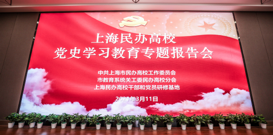 党委组织参加民办高校党史学习教育专题报告会 全面启动党史学习教育3月11日下午,上海民办高校党工委在我校晖华楼报告厅召开党史学习教育报告会,贯彻落实中央、市委和市教卫工作党委关于开展党史学习教育的部署要求,学习贯彻习近平总书记在党史学习教育动员大会上的重要讲话精神、给上海市新四军历史研究会百岁老战士们的重要回信精神。市教卫工作党委副书记、市教委副主任、市民办高校党工委书记闵辉对上海民办高校开展党史学习教育作部署,上海师范大学教授苏智良作《新四军与上海》专题报告。会议由我校党委书记陆建非主持。闵辉在动员讲话中指出,中央决定开展党史学习教育,是在中国共产党百年华诞的重大时刻和“两个一百年”历史交汇的关键节点,站在统筹中华民族伟大复兴战略全局和世界百年未有之大变局的时代高度所作出的重大决策。民办高校要深刻认识开展党史学习教育的重大意义,领会把握核心要义和重要内容,把思想和行动统一到习近平总书记重要讲话精神和党中央决策部署上来。通过学习教育,切实增强“四个意识”、坚定“四个自信”、坚决做到“两个维护”,不断提高政治判断力、政治领悟力、政治执行力,切实做到学党史、悟思想、办实事、开新局。闵辉强调,民办高校要紧扣党史学习教育的目标要求,分层分类,要采取形式多样2021-03-12
