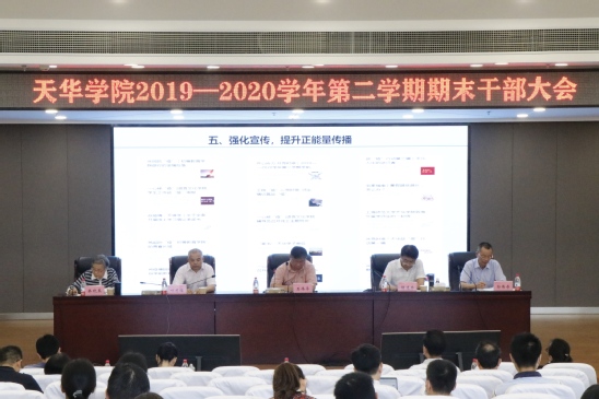 学校召开2019-2020学年第二学期期末干部大会7月10日上午,学校在晖华楼报告厅召开2019-2020学年第二学期期末干部大会。学校执行董事长石伟平、党委书记陆建非、校长叶才福、总校监郭伟奇、监事长韩晓玉出席会议。会议由执行董事长石伟平主持。会上,学保处和教务处作为部门代表首先进行经验交流。学保处副处长刘洪伟分享了学保处在疫情防控期间克服了涉及人员分布广、防控时间战线长、安全隐患多、条线协调难等种种困难,在领导高度重视、齐抓共管下,突出校园精准防控,保卫干事不顾个人安危、迎难而上、尽心尽责,助力校园疫情防控,保障校园安全稳定。教务处常务副处长徐振从教学准备、教学实施、教学监督和在线考核四个方面详细介绍了教务部门在这一特殊学期,重点依托超星和钉钉两大平台,紧抓在线教学不放松,严格落实教学目标,提高教学质量,完成教学任务。随后,党政监领导分别作总结发言。党委书记陆建非围绕精准施策,疫情防控不放松;聚焦“四史”,主体责任不走样;围绕时局,坚定信念不动摇;分批返校,毕业教育不打折;创新思维,师资建设不停歇五个方面详细总结了疫情防控常态化背景下,学校党委落实董事会部署,切实发挥党组织的核心作用,统筹推进疫情防控和事业发展的工作,重点表扬了期2020-07-10
