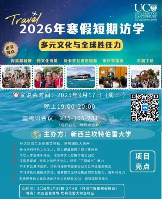 新西兰坎特伯雷大学2026年寒假短期访学项目分享会