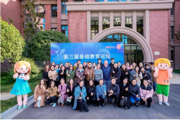 我校初等教育学院第三届基础教育论坛圆满召开2023年11月24日,上海师范大学天华学院初等教育学院第三届基础教育论坛“数智融合、接轨前沿”新型小学教师创新培养研讨会在天华学院旭华楼举行。本次论坛旨在探讨数智融合,对接前沿,创新驱动下的新型小学教师培养,助推基础教育的高质量发展。 出席活动的有来自全国基础教育领域的知名专家、兄弟院校小学教育系主任和上海市各小学校长。我校党委书记陆建非、校长叶才福、副校长龚春蕾、校监兼初等教育学院院长史文以及初等教育学院全体教师出席该论坛。论坛开幕前,天华学院党委书记陆建非教授代表天华学院以及初等教育学院向与会嘉宾表示热烈欢迎。(陆建非书记致欢迎辞)为感谢各家实习单位和行业导师对学生实习就业的大力支持,本次论坛特设天华学院“教育实践基地杰出单位”和“杰出行业导师”的授予仪式。上海师范大学天华学院校长叶才福为闵行区七宝明强第二小学、上海七宝明强小学、上海市宝山区月浦中心校、上海市普陀区朝春中心小学和嘉定青少年科创集散地颁发“教育实践基地杰出单位”荣誉称号。(叶才福校长颁发“教育实践基地杰出单位”)上海师范大学天华学院副校长龚春蕾为上海市浦东新区梅园小学毛燕菁校长、上海市静安实验小学沈文玮校长、上海2023-11-25