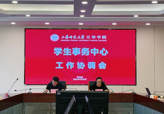 学校开展学生事务中心工作协调会为持续优化学生事务办理流程、提升服务效能,切实打通服务学生的“最后一公里”,9月29日9:00,学校在明华楼五楼会议中心召开学生事务中心工作协调会。校长龚春蕾、副校长徐子卿、学校相关职能处室负责人参会,会议由学保处处长刘洪伟主持。会上,学保处黄璐老师首先对《上海师范大学天华学院学生事务中心管理办法(试行版)》进行解读,从组织框架搭建、日常运行模式设计、核心服务内容划分,到各岗位具体职责界定等维度,逐一进行详细说明。各职能部门负责人结合工作实际展开交流讨论,针对学生事务办理中的痛点问题提出具体解决方案,形成协同推进的工作共识。副校长徐子卿在发言中强调,学生事务中心的成立与运营直接关系到学生在校的获得感与满意度。他要求各部门要树立“一盘棋”的意识,始终以“学生满意”作为核心目标。同时要积极搭建“学生服务学生”的互助平台,引导学生主动参与事务管理,在服务他人的过程中提升自身解决问题的能力,形成良性互动的学生服务生态。校长龚春蕾在总结讲话中以生活中常见的政务服务大厅、社区事务办理中心为类比,生动阐释了学生事务中心“便捷化、集约化、人性化”的建设方向,并围绕“怎么做、谁来做、为谁做”三个核心问题2025-09-30