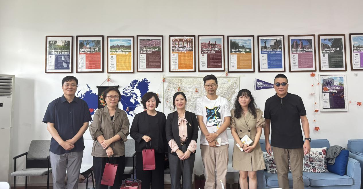 韩国釜山外国语大学代表团来访2025年9月23日下午,韩国釜山外国语大学代表团一行四人来访天华学院,来访人员有国际交流处处长权善姬、中文系教授李晓英、上海本部院长郑一鸣及本部主任文奎春。天华学院艺术设计学院实训处主任周亮、国际交流处处长兼北亚利桑那学院常务副院长胡雅楠、副处长夏智源等代表热情接待。双方室展开友好而深入的交流。胡雅楠处长详细介绍天华学院办学特色及学院设置,权善姬处长首先就韩国釜山外国语大学的办学特色、学科优势及国际化发展做了详细介绍,展现了该校在外语教育与跨文化沟通方面的深厚底蕴。在随后的项目洽谈环节,双方围绕艺术类、教育类及创新创业类硕士联合培养项目展开热烈讨论,就硕士升学、学生交流等多方面达成初步合作意向。此次洽谈不仅加深了两校之间的了解,也为未来多层次、宽领域的合作奠定了坚实基础。天华学院始终秉持开放办学的理念,积极拓展国际交流与合作。此次与韩国釜山外国语大学的互动,是推进教育国际化、提升人才培养质量的重要一步。期待两校未来能在更多专业领域携手并进,共同书写教育合作的新篇章!(与会领导合影留念)供稿| 国际交流处2025-09-25