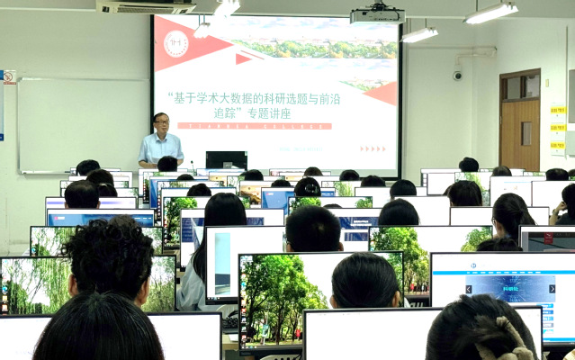 深化AI赋能,推进智研新范式:学校举办学术大数据科研应用专题讲座2025年9月11日,科研处在明华楼324组织开展基于学术大数据的科研选题与前沿追踪专题讲座。作为学校AI赋能科研战略布局的重要实践,本次活动吸引百余名教师参与,党委书记高建华、科研处处长与万方数据专家团队共同解锁学术大数据的科研新范式。(科研处处长郑宁主持会议)科研处处长郑宁教授在开场致辞中指出,在年产出超百万篇学术论文的当下,如何从信息洪流中精准捕捉科研突破口已成为关键命题。此次联合万方数据打造的大数据应用专题培训,正是学校构建智能科研支持体系的重要举措。通过系统化培训,助力教师将海量学术数据转化为选题决策的导航仪和前沿追踪的望远镜。(党委书记高建华动员讲话)党委书记高建华莅临会议并进行了热情洋溢的动员。高书记从学校的科研发展规划的角度,分析了学校目前科研情况,鼓励广大教师特别是青年学者积极投身科研,推动个人科研提升和学校科研攻坚。(万方讲师团培训)万方数据资深培训师团队带来沉浸式教学,通过理论解析+实操演练双轨模式,系统演示了学术趋势分析、热点聚类挖掘、研究者画像构建等核心功能。参训教师现场操作数据库,运用文献计量分析工具生成个性化科研选题报告,直观感受大数据对选题创新性的提升效2025-09-15